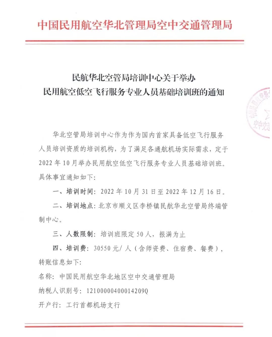 关于举办民用航空低空飞行服务专业人员基础培训班的通知