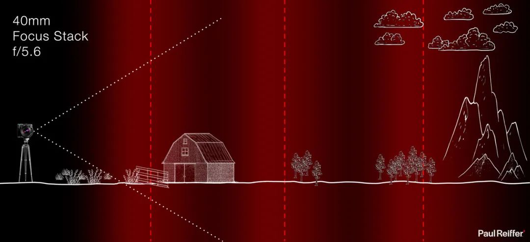我们可以把焦平面伸到远处,再用足够大的光圈来获得清晰度(但也要足够小才能获得合适的景深),同时保持单次拍摄。