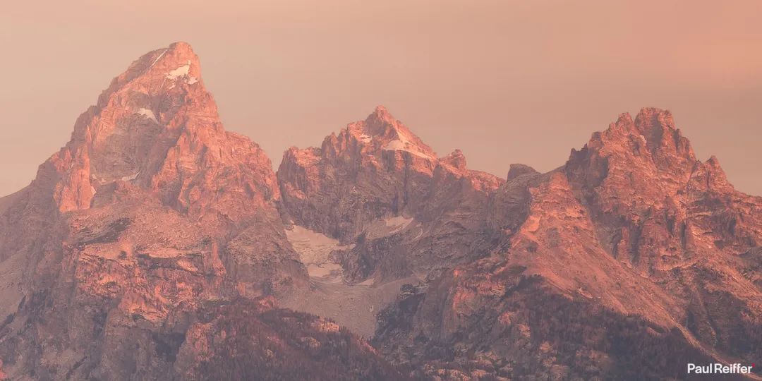 远处背景中的提顿山脉,将近我们有15千米远,现在拍到了令人难以置信的细节。特别是我们使用的是一支40mm镜头,理论上它只能对焦几米外远。