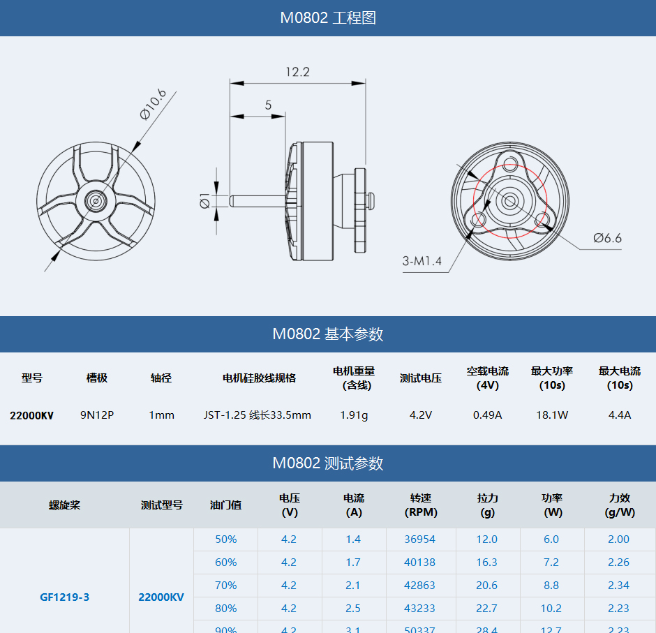 机灵小巧 灵活操控M0802M0802有什么优势适用65-75mm无刷WHOOPM0802 22000KV梦幻蓝配色,颜值升级一体铝包式转子电机更耐炸精准操控轻巧转弯飞行更轻盈优选材...