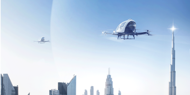 NO.5 亿航智能联合科技与投资集团e&,“空中的士 ”EH216亮相迪拜科技展GITEX GLOBAL