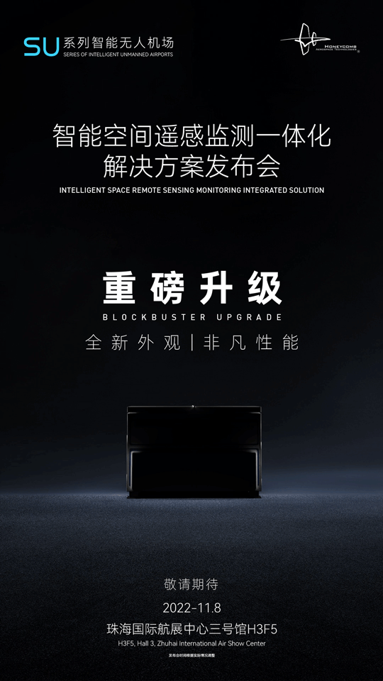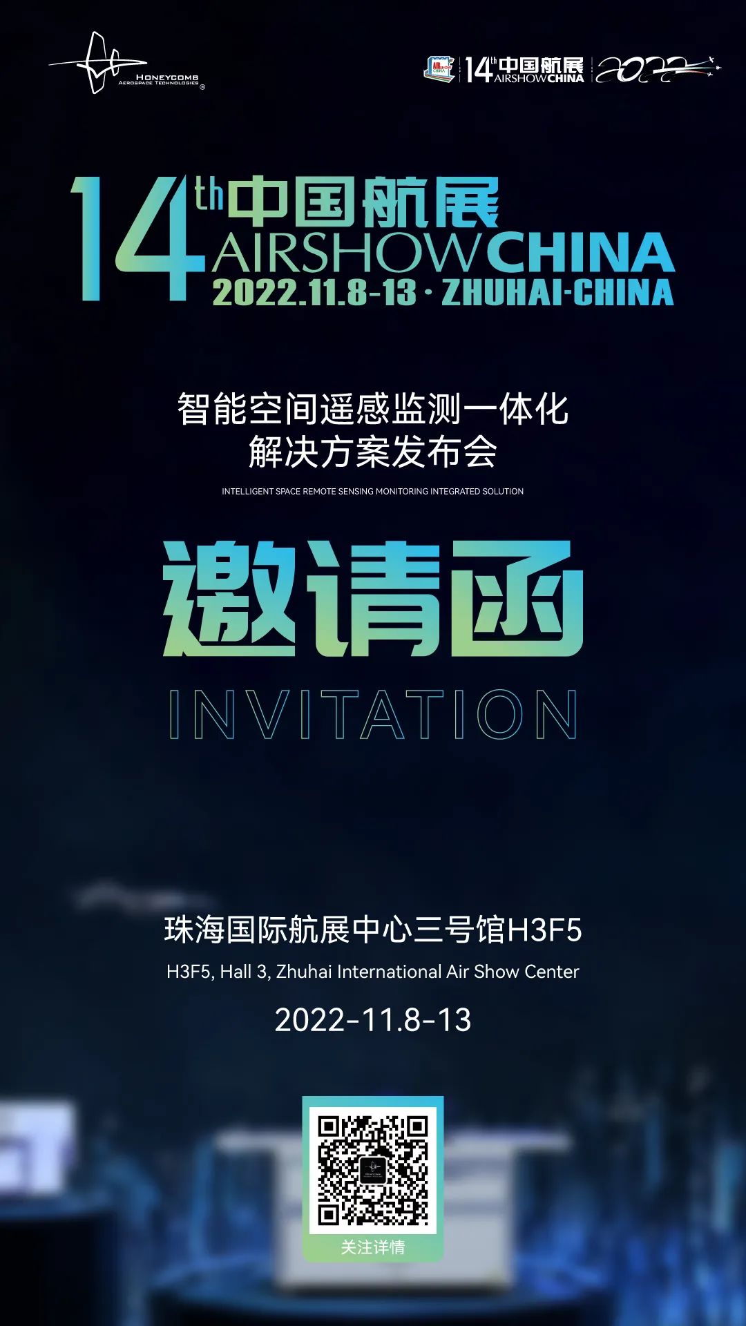 2022年11月8-13日,第十四届中国国际航空航天博览会(珠海航展)将在广东省珠海市金湾区机场大道盛大开幕。蜂巢航宇届时将在三号馆H3F5,举行智能空间遥感监测一体化解决方案发布会和“蜂巢航宇无人机万里行”活动启动仪式。向您展示蜂巢航宇无人机重磅新品和最新解决方案,同时将开启全国大型行业无人机应用活动,敬请期待!在此真诚期盼您的参加,恭候您的到来。