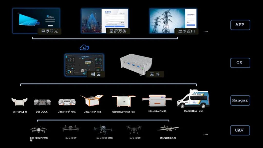 要实现全自动化巡检离不开各种设备之间的适用配合,星逻驭光不仅可以搭配多种无人机品种,例如大疆的行业级无人机(M300等),同时还能兼容多款无人机机库,包括星逻智能自研机库以及DJI DOCK机场,高度的适配性和兼容性使硬件和软件的使用率提高,也能为客户提供更高性价比的服务;