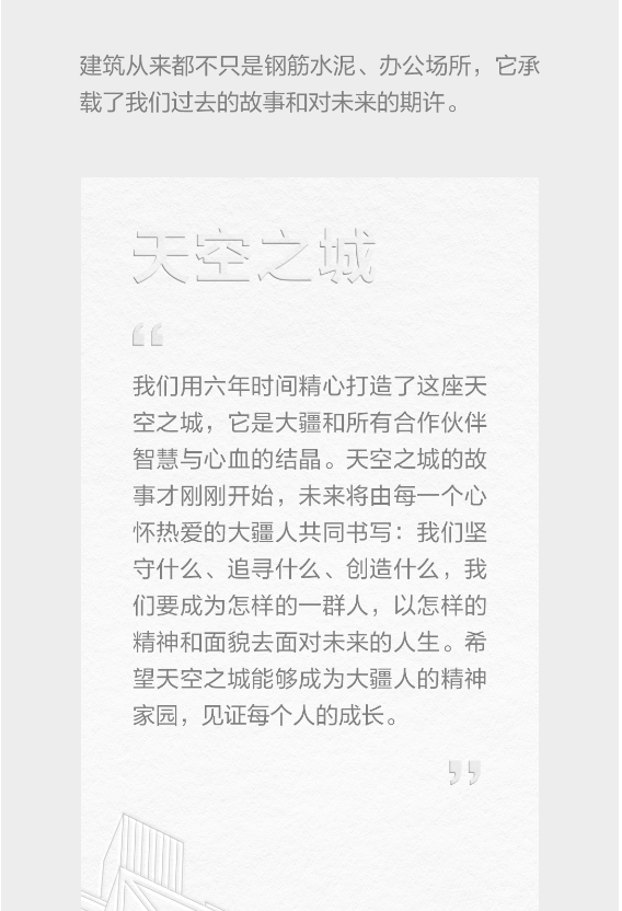 十年间,DJI站在了行业之巅,开启全球飞行影像新时代,展现出改造世界的无限可能。我们的经历证明,一个初出茅庐的年轻人不去曲意逢迎、不去投机取巧,只要踏实做事,就一定能取得成功。我们相信,那些回归常识、尊重奋斗的人,终将洞见时代机遇,并最终改变世界。