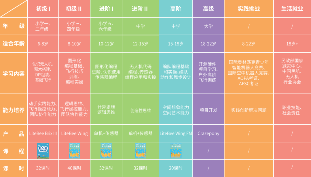 LiteBee Sky最大的优势在于,其不仅满足学生对积木搭建的个性化需求,同时具备编程功能。仅需一台手机/平板,搭配专用图形化编程软件,即可随时随地完成编程飞行任务。