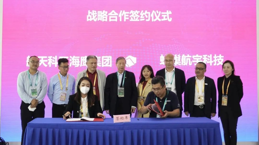 发布会上蜂巢航宇和航天科工海鹰集团有限公司、中国科学院空天信息创新研究院签署了相关战略合作协议,蜂巢航宇在工业级无人机智能化上再次迈出坚实一步。