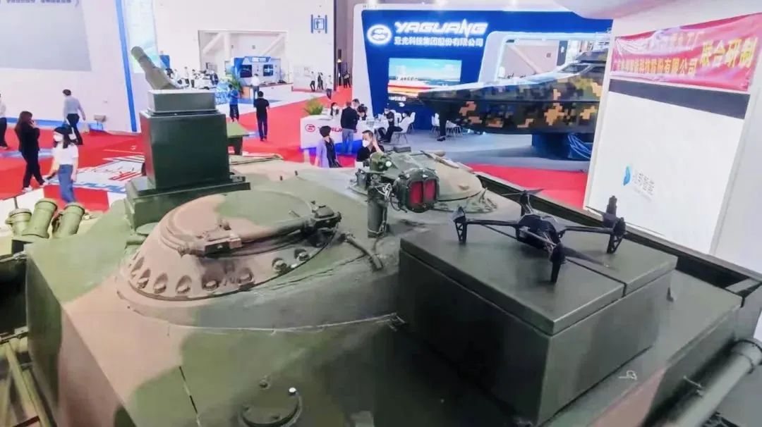 融合民用信息技术研制的专用数字化射击训练装备——坦克训练装备系统,采用光电稳像技术,配合高精度炮控,实现火控系统的稳像功能;运用以枪带炮射击方式、综合信息采集与分析技术,进行训练过程数字化监控与评估,快速分析训练要点,精准提升训练水平;可完成训练大纲规定的初级、三级科目的射击训练要求,有效构建陆军地面信息化战术作战对抗体系,完成战术对抗训练。同时结合现代作战理念,安装了蜂巢航宇无人机系统,训练学员战场侦查、搜索,提前发现目标的能力。