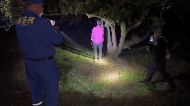 “快看,那好像有个人!”功夫不负有心人,22时30分,历经两个小时的紧张搜救,特警队员胡杨斌终于在山林间一棵杨梅树下找到了走失老人徐某。
