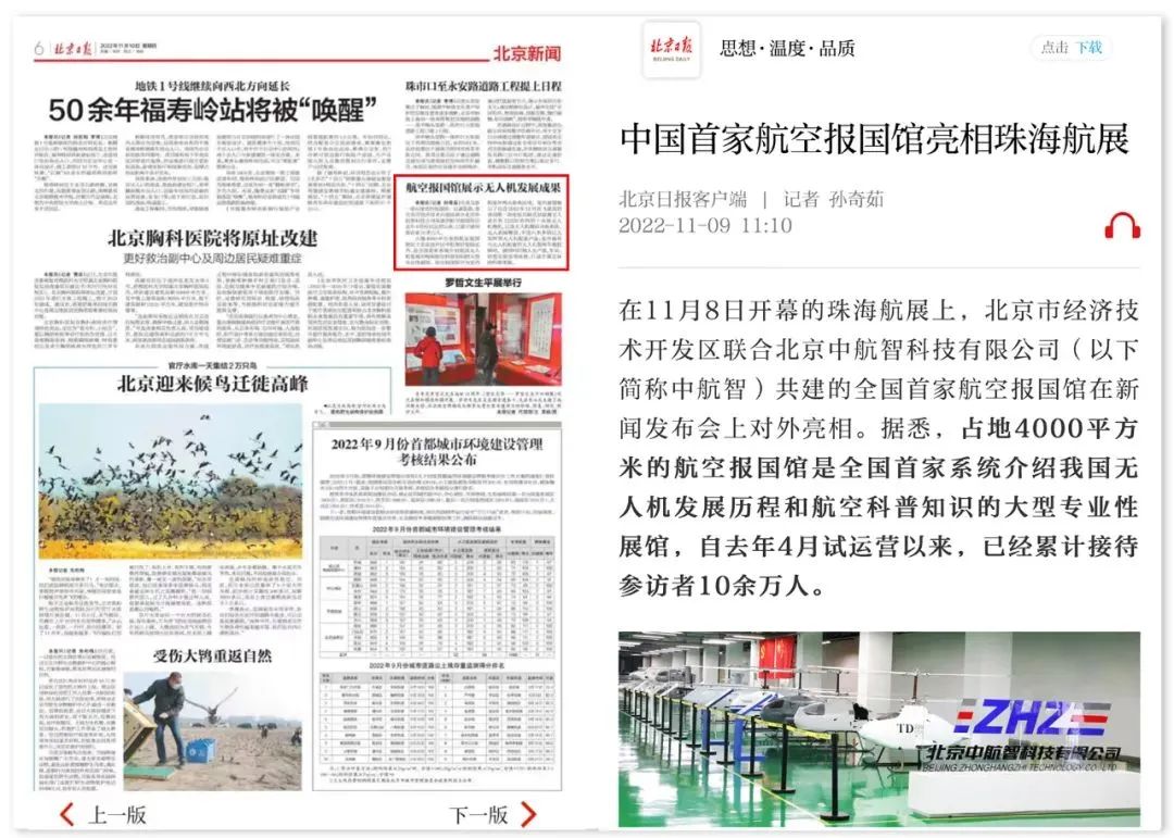 报道摘要——北京市经济技术开发区联合北京中航智共建的全国首家航空报国馆,占地4000平方米,是全国首家系统介绍我国无人机发展历程和航空科普知识的大型专业性展馆。