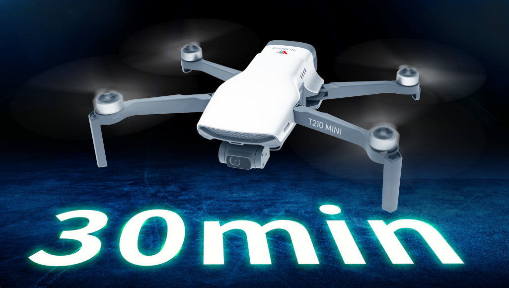 T210 MINI拥有强而有力的高效动力系统,最高飞行速度可达25m/s(无风环境下姿态模式),最大可承受7级强风,抗风性能优异。轻量化的机身结合智能电池,最长续航可达30分钟,让您轻松畅玩,更尽兴。
