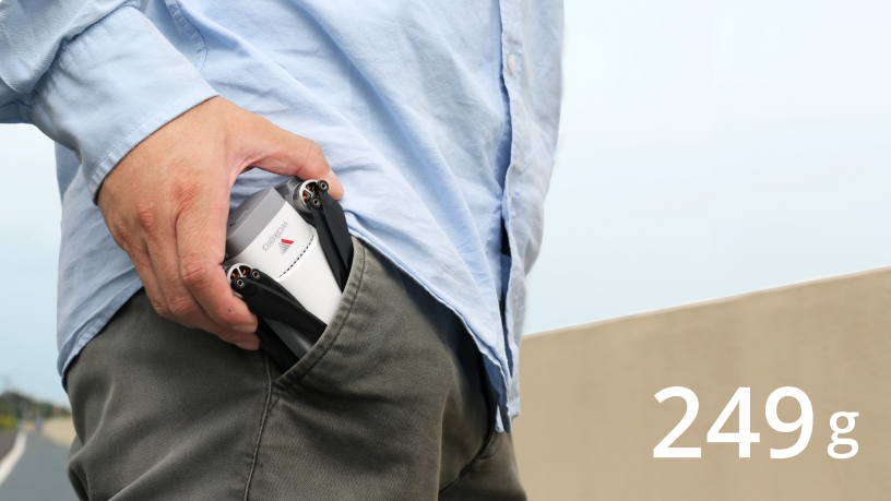 T210 MINI无人机重量只有249克,采用折叠设计,展开后的轴距仅241.6mm,折叠后的机身尺寸为143mm*82.8mm*57mm,相当于一个可乐罐大小。折叠后可轻松放入口袋,收纳便携,展开即飞,给旅途带来更多惊喜。同时搭载视觉光流+TOF定位系统,在室内也能稳飞,可适用更多飞行场景。