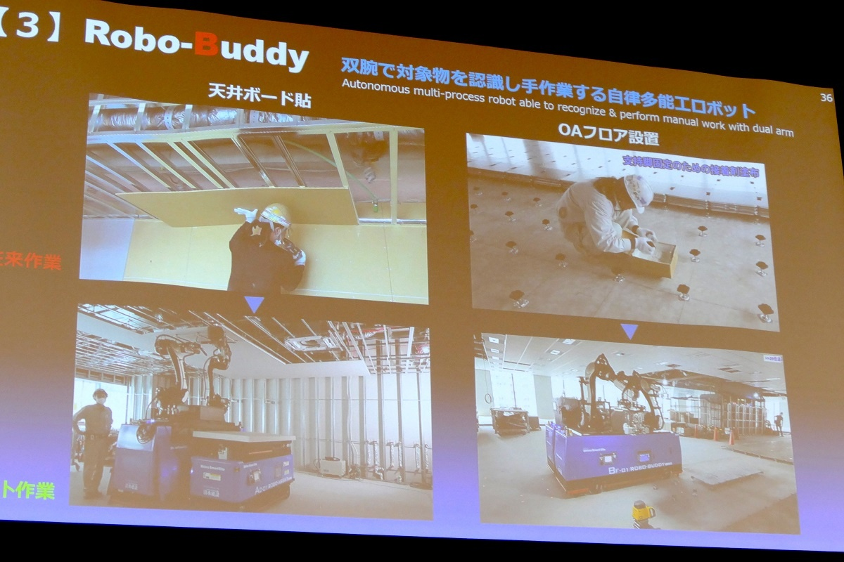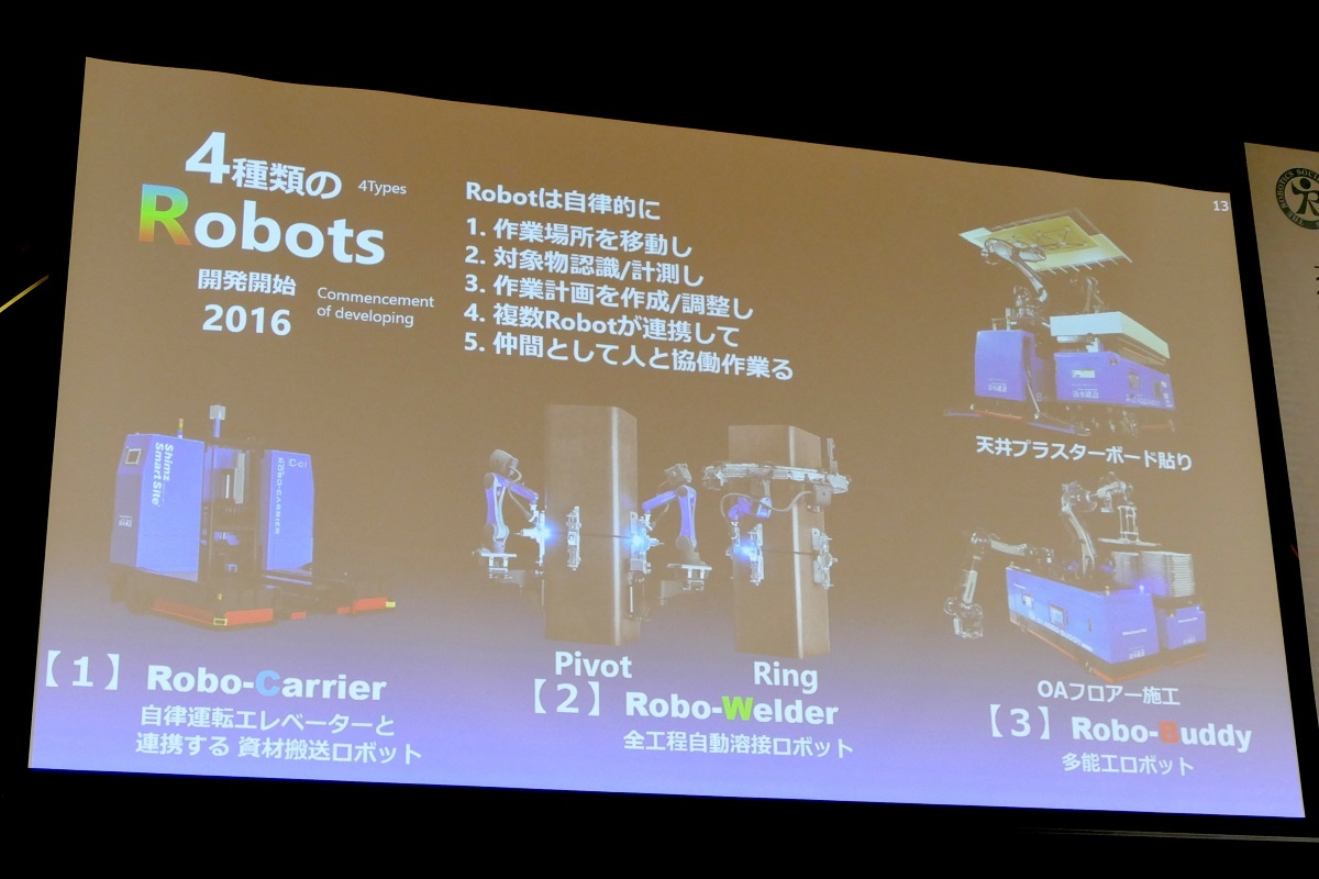 截至 2022 年 4 月 11 日,执行运输的“Robo-Carrier”机器人共运输了 3,267 个托盘。此外,我们还开发了全自动焊接“Robo-Welder”、施工天花板和地板的多用途机器人“Robo-Buddy”和防火涂料喷涂机器人“Robo-Spray”。据说在引进现场实现了75%以上的省工率。但是,整个施工的省力化还没有取得进展。