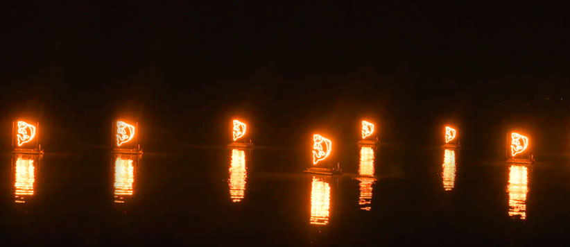 开幕式在第一篇章《天下洞庭》的情景歌舞中拉开帷幕。30艘云洲S20小型表演无人船同时搭载烟花和网画,组成方队进行全息水幕科技表演《世界的南湖》,瞬间将现场氛围感拉满。5艘云洲L12E大型表演无人船搭载冰屏紧随其后,分别打出字幕“岳阳欢迎您”,向现场嘉宾代表和线上直播观众表示欢迎。无人船的编队阵容,开场即“王炸”,成功以世界的南湖为主题,打造出动感的、时尚的南湖新形象,以及夜游南湖实景演出产品模板。