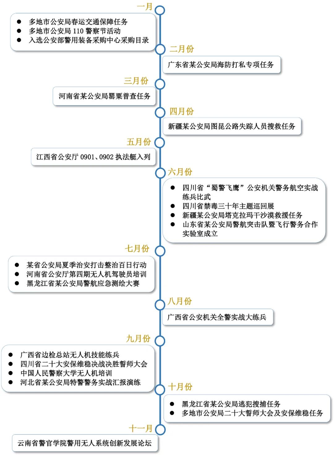 近年来无人机技术迅速发展,我国民用无人机产业发展处于国际前列,在市场份额、研发制造能力、应用广度和深度方面均具有一定优势。特别是无人机在各个领域的应用“百花齐放”,在国防建设、抗震救灾、社会管理、城市规划等方面发挥着积极作用,其中警用无人机作为一种新型警用装备在公安机关得到较快的应用,装备数量和市场容量逐步扩大,在应急处突、大型活动安保、禁毒铲毒、交通管理、边海防巡查、搜查救援、基础地图数据采集等场景发挥了不可替代的作用,成为服务社会、维护社会稳定的重要力量。