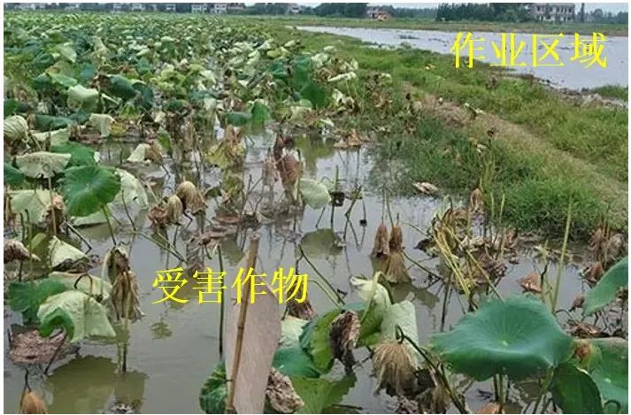 草甘膦、百草枯、草铵膦、敌草快等灭生性除草剂作业时,药剂一旦飘移到其他作物上势必会造成药害,所以应非常谨慎地对待灭生性除草剂飞防作业,尽量避免。