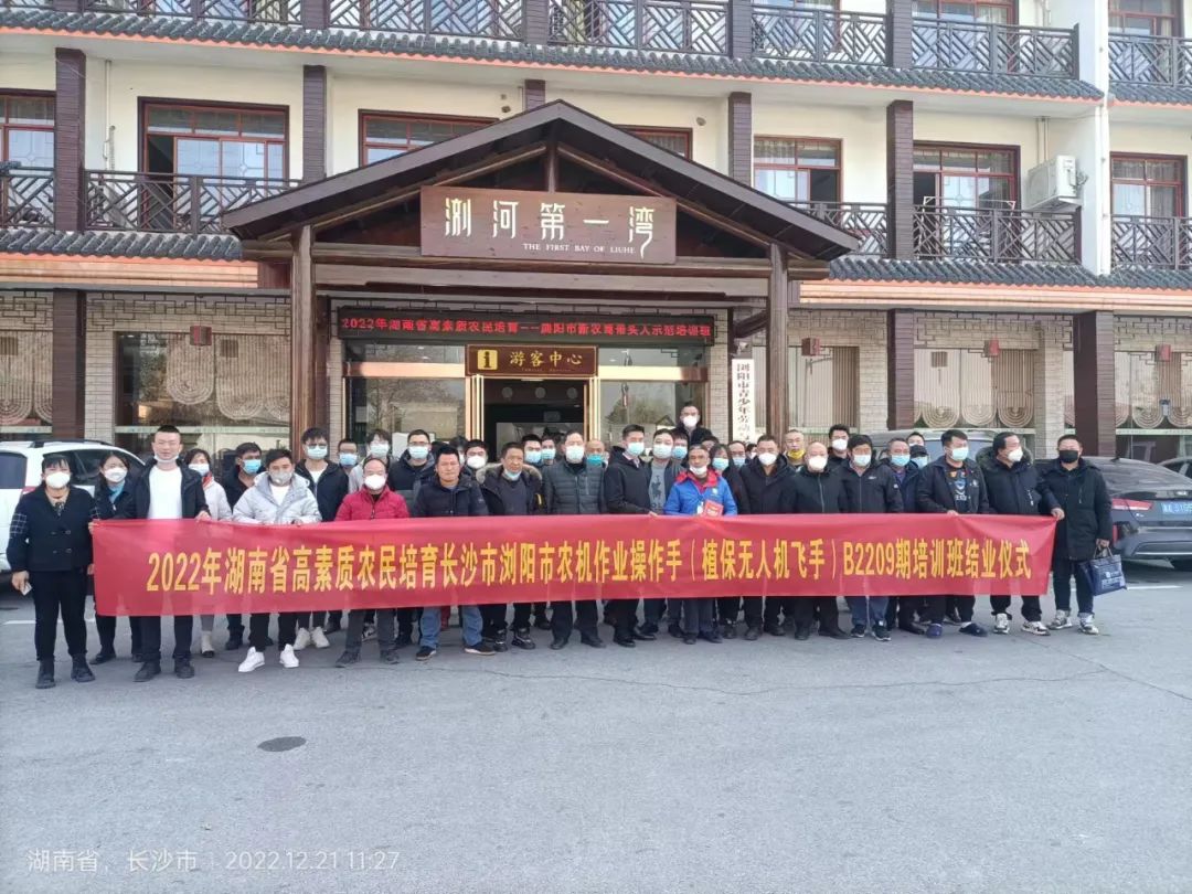 为贯彻落实党的二十大精神,全面推进乡村振兴和农业农村现代化,提高农民科技文化素质,推进农民培训提质增效,培养适应产业发展、乡村振兴所需的高素质农民队伍,2022年湖南省高素质农民培育浏阳市植保无人机飞手培训班12月17日开班,经过5天的培训于12月21日顺利结业。