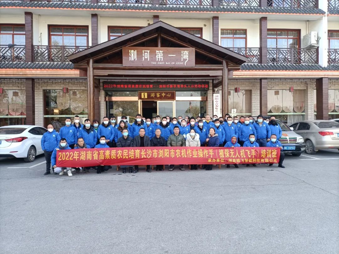 2022年12月17日,由浏阳市农业农村局主办,湖南精飞智能科技有限公司承办的2022年浏阳市高素质农民培育植保无人机飞手培训班在浏阳市浏河第一湾生态农庄开班。浏阳市农业农村局党组成员赵勇、总农艺师李云峰、湖南省农业广播电视学校浏阳分校校长彭啸洪、副校长周宏伟、湖南精飞集团副总经理许东出席开班仪式,开班仪式由湖南省农业广播电视学校浏阳分校校长彭啸洪主持。来自全市的70名学员参加了此次培训。