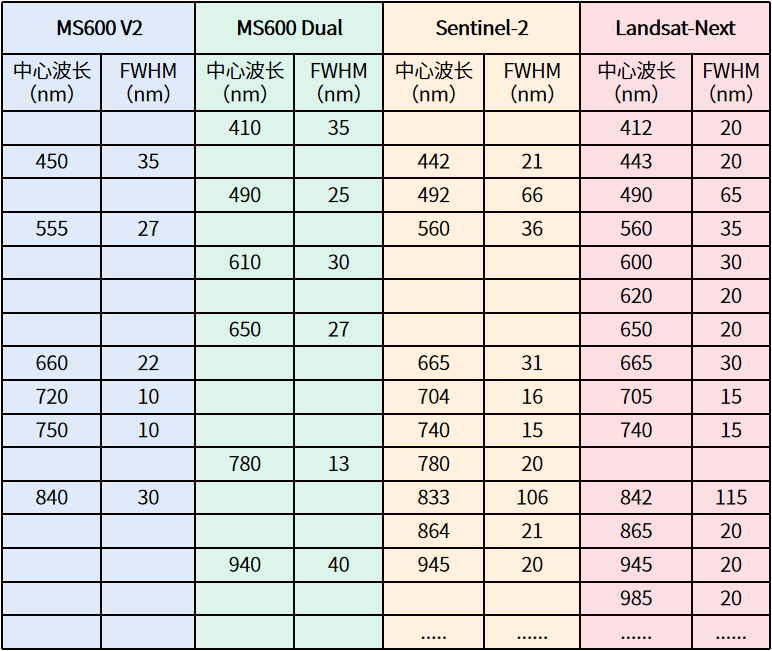 MS600 Dual保持了与目前Sentinel-2与Landsat-Next等主流卫星波段设计的一致性,最大程度保证了农业、林草业、生态环境等领域科研学者对星载、机载光谱数据的信息统一。