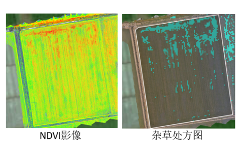 通过 M3M 结合大疆智慧农业平台输出杂草处方图可以精准喷施除草剂,在茎叶处理阶段极大降低费用。据江苏地区客户反馈,节省除草剂 80-90%,节省费用 25-50 元/亩。