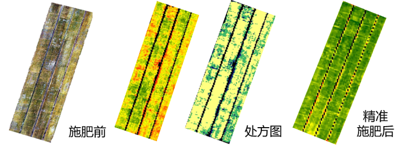 利用大疆多光谱无人机可以实现土地平整、出苗率分析、长势分析、变量化控、变量营养液喷施、碱斑地打药等。以 2022 年伊犁霍城县变量作业地块为例,增产 20-30 公斤/亩,增收 106-159 元/亩。