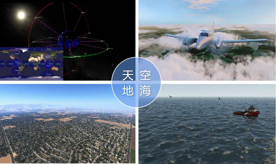 基于商用引擎进行二次开发,根据客户需求,快速构建大范围高逼真三维场景。支持:天/空/地/海多种场景、可见光/红外/SAR成像载荷仿真、数千公里大地形、多种格式模型加载、windows/linux跨平台。