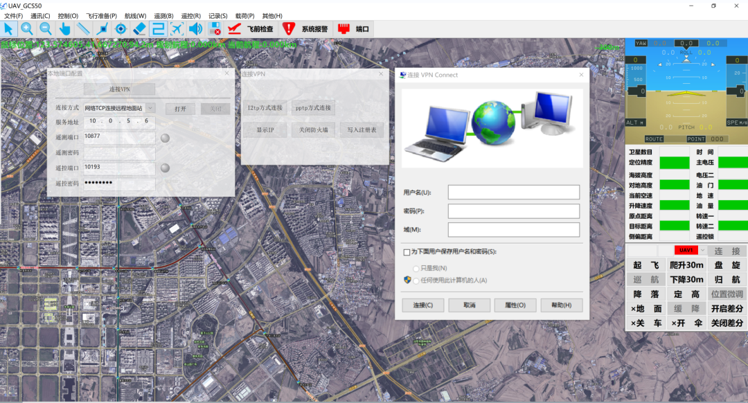 设置“网络TCP连接远程地面站”方式,实现“远程GCS软件—飞行现场GCS软件—无人机”的飞行控制方式。
