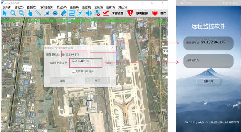 通过服务器地址和地面站口令校验,实现多用户单位分组和多飞行现场接入。