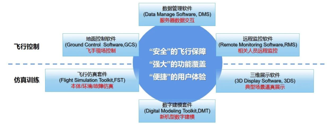 上述6款软件产品,能够为用户多种应用场景提供服务,包括:现场飞行控制、远程飞行指挥、飞手模拟训练、新机研发建模、三维场景展示等。