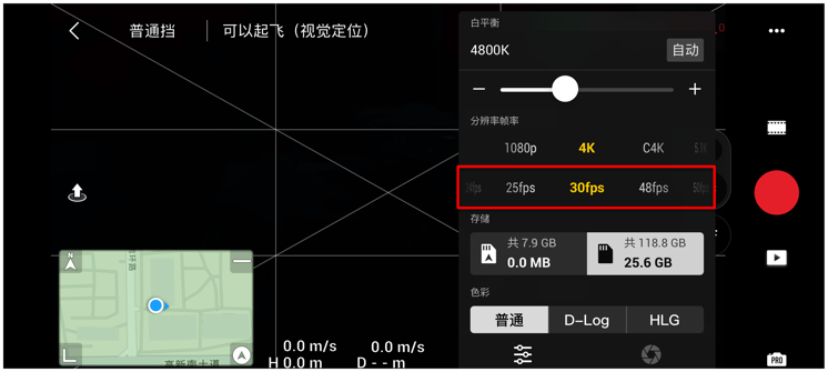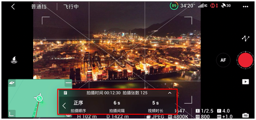 3、设置拍摄格式:在地面提前设置延时合成分辨率、原片格式等。