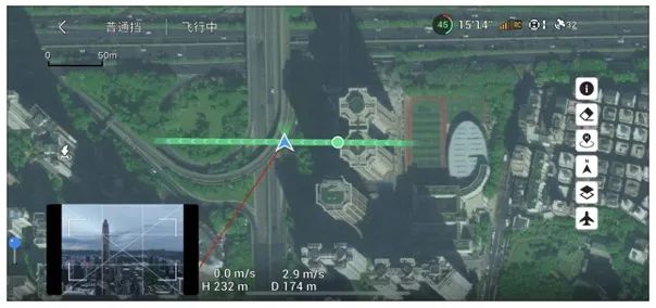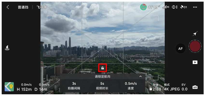 锁定航向:将当前飞行朝向锁定为航线方向,地图上也可显示任务航线方向;