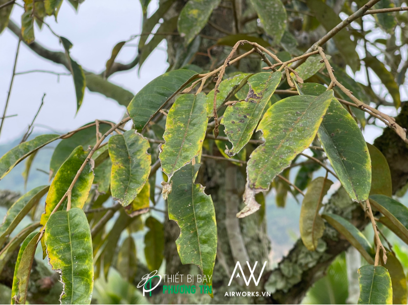 喷洒一段时间后,树叶枯黄和残缺现象明显减少,新长出来的嫩叶和成熟果实也能避免被虫害侵蚀。大疆 T30 的大流量、强穿透、雾化均匀,可以帮助越南当地果农更好地防治病虫害。