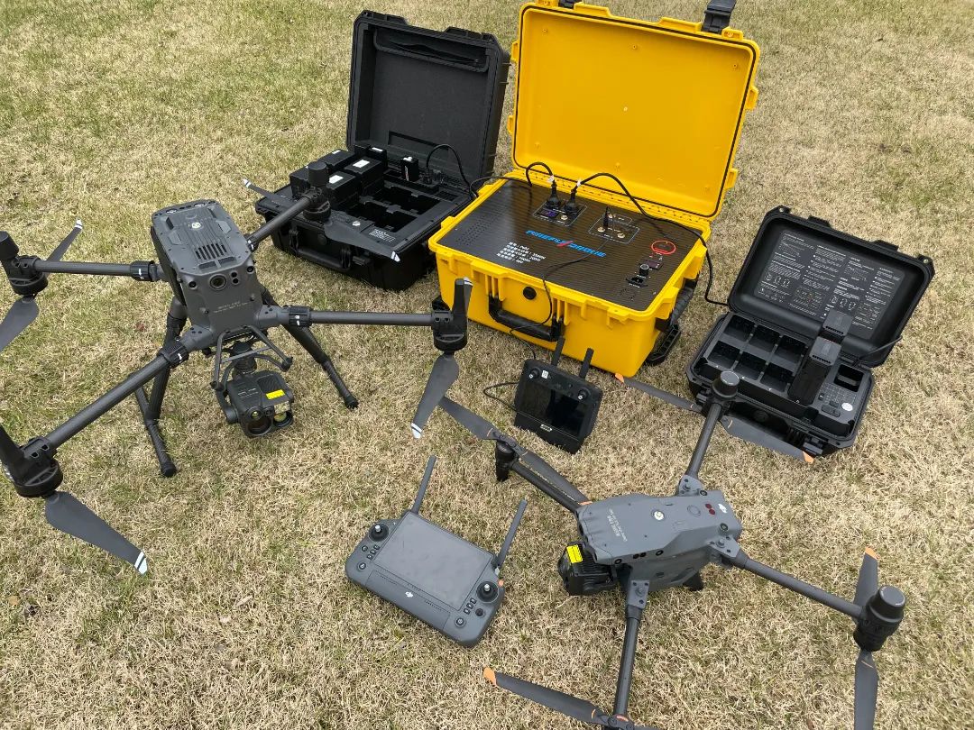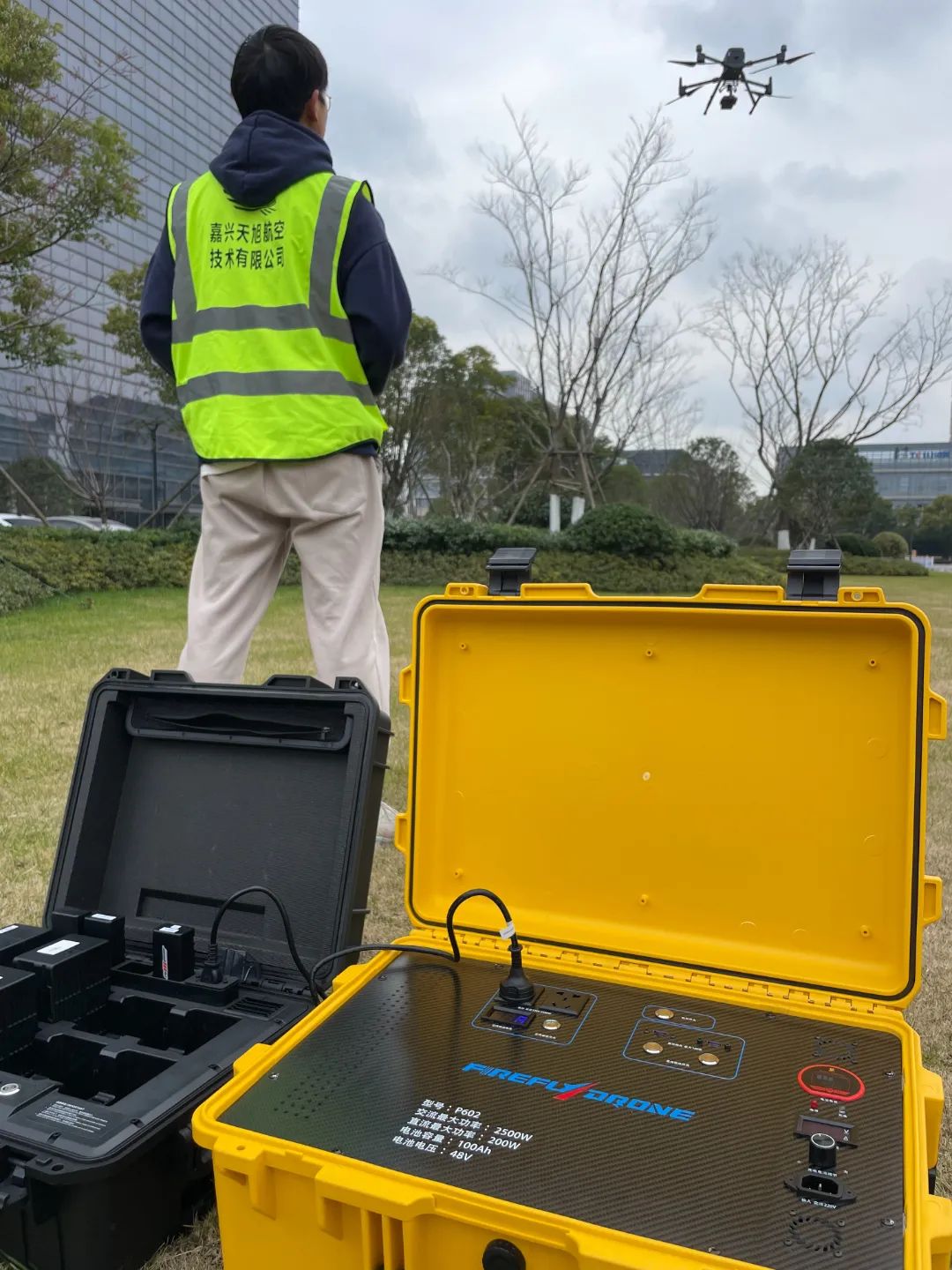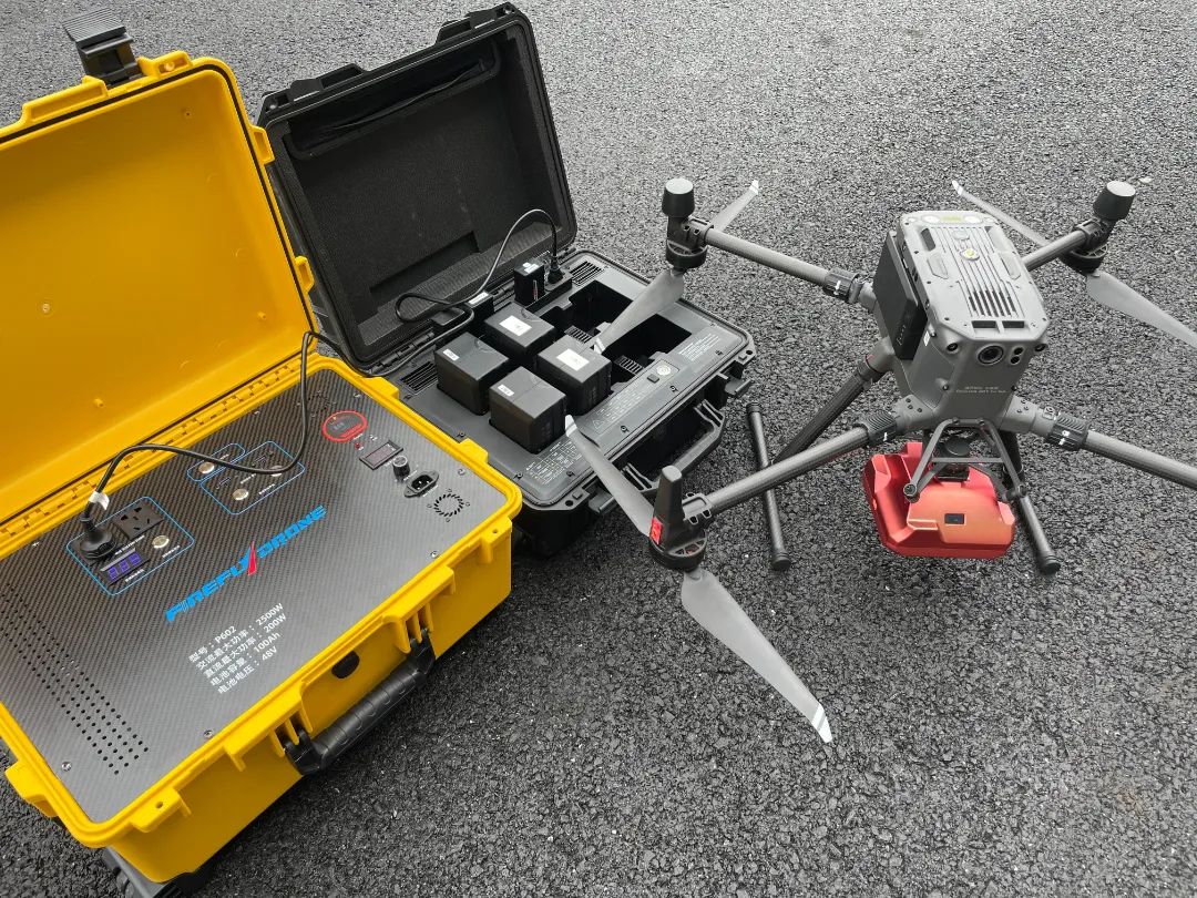 1、 倾斜摄影:以大疆 经纬M300 RTK搭载塞尔202S PRO V2五镜头相机为例,在实际倾斜摄影任务中,P602充电箱可以保障无人机全天候的电源供应,在做好飞行器电池散热的情况下,可以实现无人机从早晨7点-傍晚5点不间断工作10小时,解决无人机外出无处充电的问题,同时可以通过P602充电箱的USB-C接口,给遥控器进行快充,使P602电池箱成为持续稳定的电源供应中心。