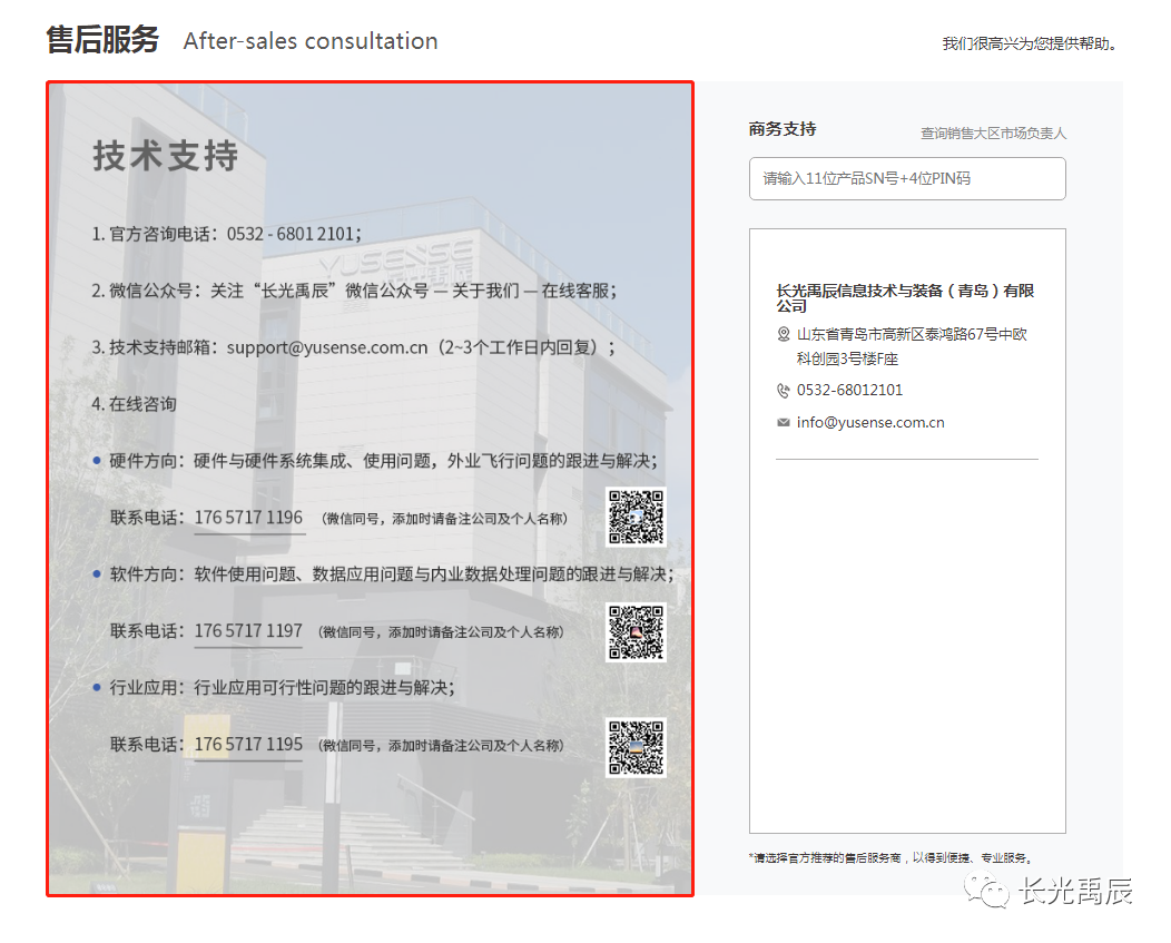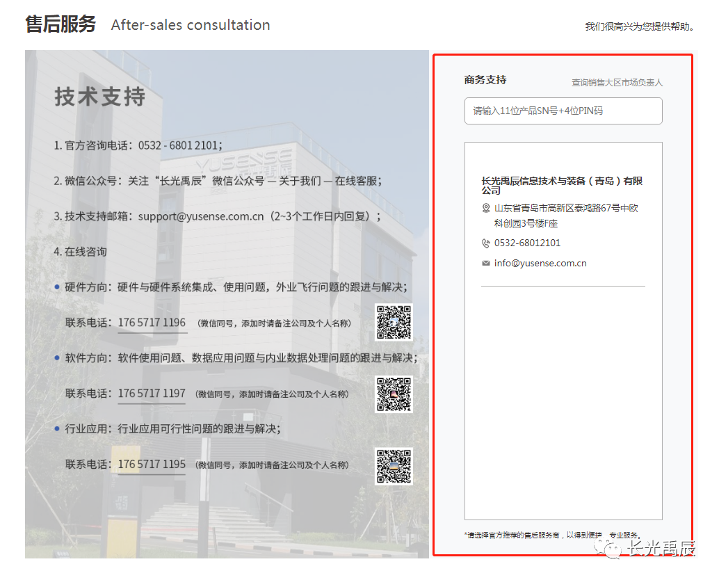 可通过产品【11位SN码+4位PIN码】直接查询到禹辰对应销售大区负责人的联系方式,帮助终端客户直接获取禹辰商务服务。