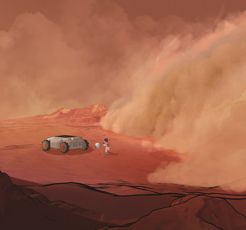 小海:“危险!我们遇到了火星沙尘暴!快返回基地避险!”