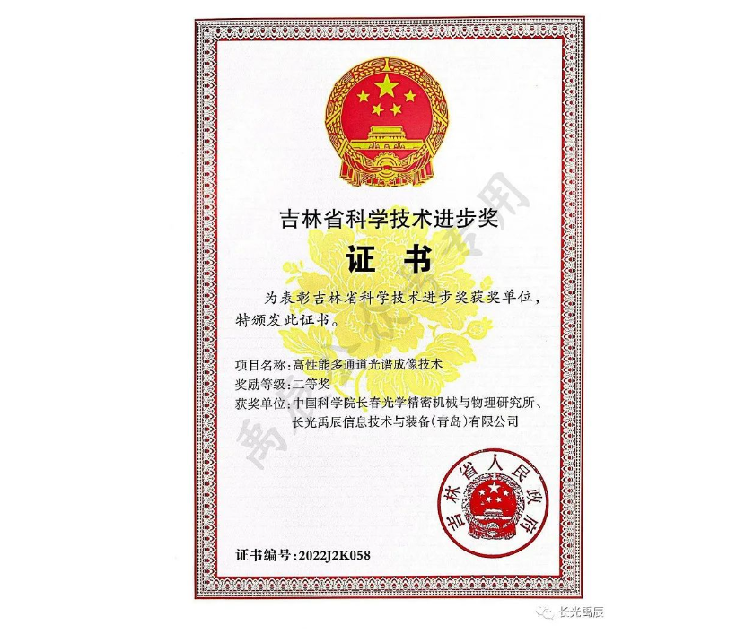 近日,由中科院长春光机所、长光禹辰公司联合申报的“高性能多通道光谱成像技术”项目获得吉林省科学进步二等奖。