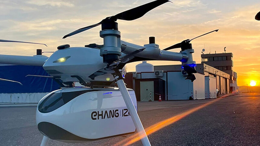 EHang的猎鹰B(物流)自主无人机在西班牙ATLAS中心进行的飞行测试