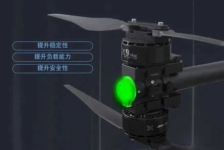 共轴设计提供高稳定性,升力和飞行效率。与传统四轴飞行器相比,它也更安全,即使一个旋翼出现故障,也不会影响整体稳定性和飞行安全。