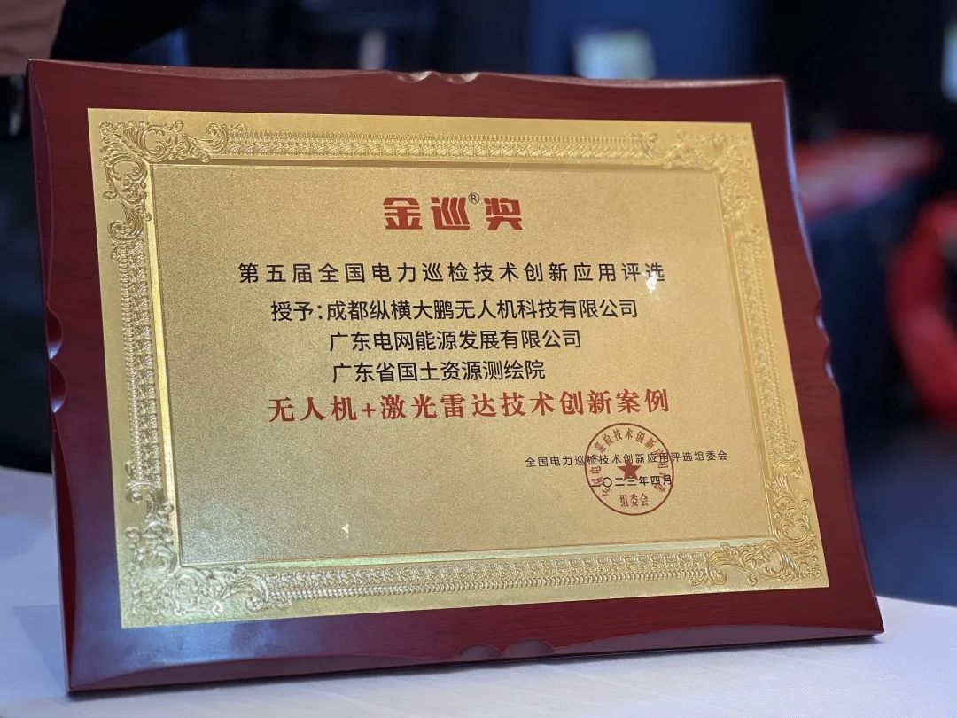 纵横大鹏垂直起降固定翼无人机激光雷达系统,荣获固定翼无人机技术创新应用奖。