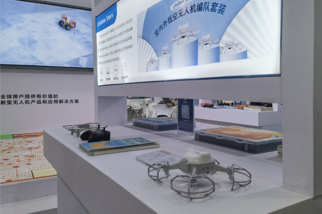 创客火无人机在此次展会上,集中展示了创客教育与无人机相结合的创新型无人机系列产品和课程,包括年度新品LiteBee Brix Ⅲ 积木无人机、LiteBee Wing 编程积木无人机、Ghost II 可编程积木无人机以及无人机编队。另外还有竞速穿越无人机和创客类开源产品等。