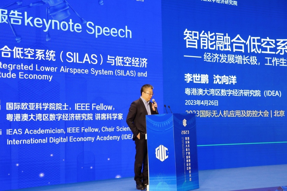 国际欧亚科学院院士,IEEE Fellow,粤港澳大湾区数字经济研究院讲席科学家李世鹏教授作报告《智能融合低空系统(SILAS)与低空经济》。李世鹏教授提出,低空经济是指以低空飞行为牵引,辐射带动的融合发展的综合性经济形态。国家从2010年开始推动低空经济的相关政策,到今年无人机条例的颁布,国家政策极大促进了低空经济的发展。发展低空经济,要注意三要点; 一是应用为王,二是政府为主,三是技术为底。