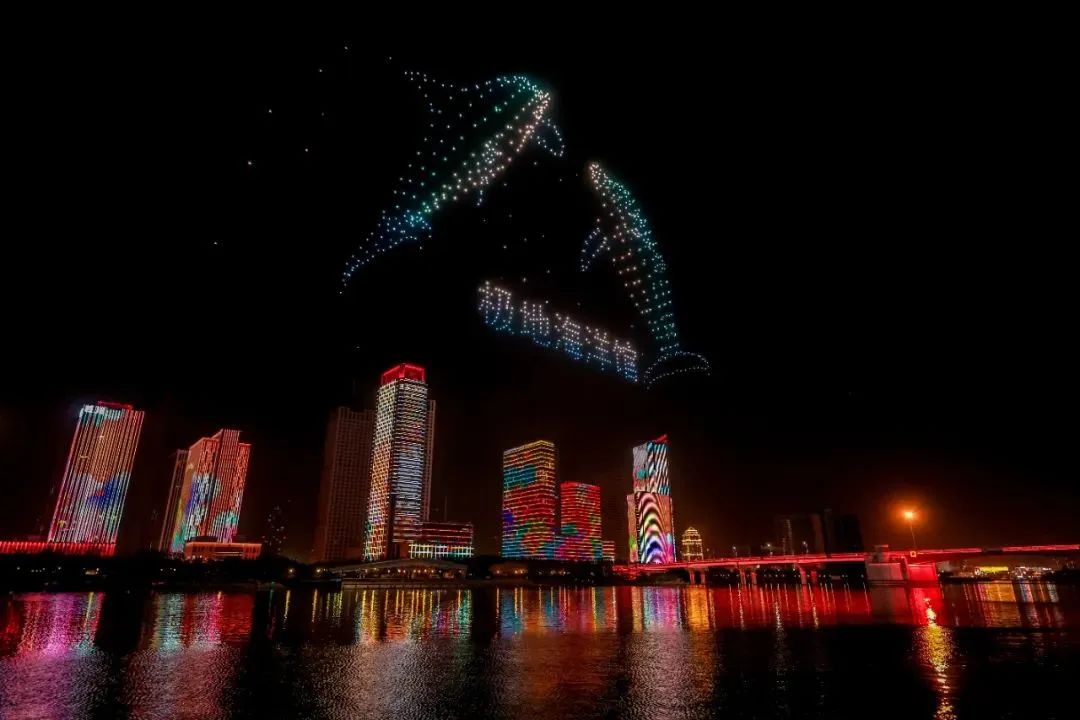 4月29日、30日晚,1600架无人机惊艳亮相天津滨海新区于家堡,庆祝“向海乐活节”盛大开幕,开幕式以百人交响乐配合无人机表演等活动,为市民游客带来一场别开生面的视听盛宴。本次无人机表演呈现了包括东疆湾沙滩、国家海洋博物馆等滨海新区海洋文旅产业特色文旅地标,助力滨海新区海洋文旅产业发展。