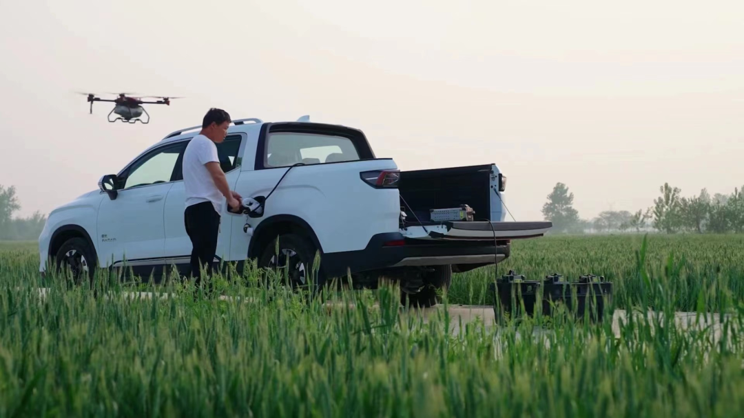 最后,新能源带来新⽣活,乡村发展更加可持续。当数字技术渗透到农村发展的方方面面,不同年龄、职业、文化背景的人都能获得惬意的生活方式。只有这样才能让更多的年轻人回归农业,乡村振兴才是一件可持续的事情,而不再是短期的商业行为。—新能源技术,是智慧农业的重要一环无人飞机、车辆和新农人,是极飞智慧农业的三元素。车辆是农业工作者运输转场、田间作业必不可少的装备。以前新农人下地作业,通常用卡车、面包车、甚至三轮车来运输无人飞机和电力设备,然而这些都不够经济、高效和安全。农业无人飞机作业使用纯电驱动,但给它充电的发电机设备却仍然靠燃油。使用燃油发电机充满一块电池约需要 3 块钱,成本非常昂贵。为此,极飞科技与吉利雷达展开跨界合作,推出“雷达 RD6 纯电皮卡 + 极飞农业无人飞机”的全新组合方案,改变传统燃油充电方式,为新农人和农业生态提供更经济的发展模式。