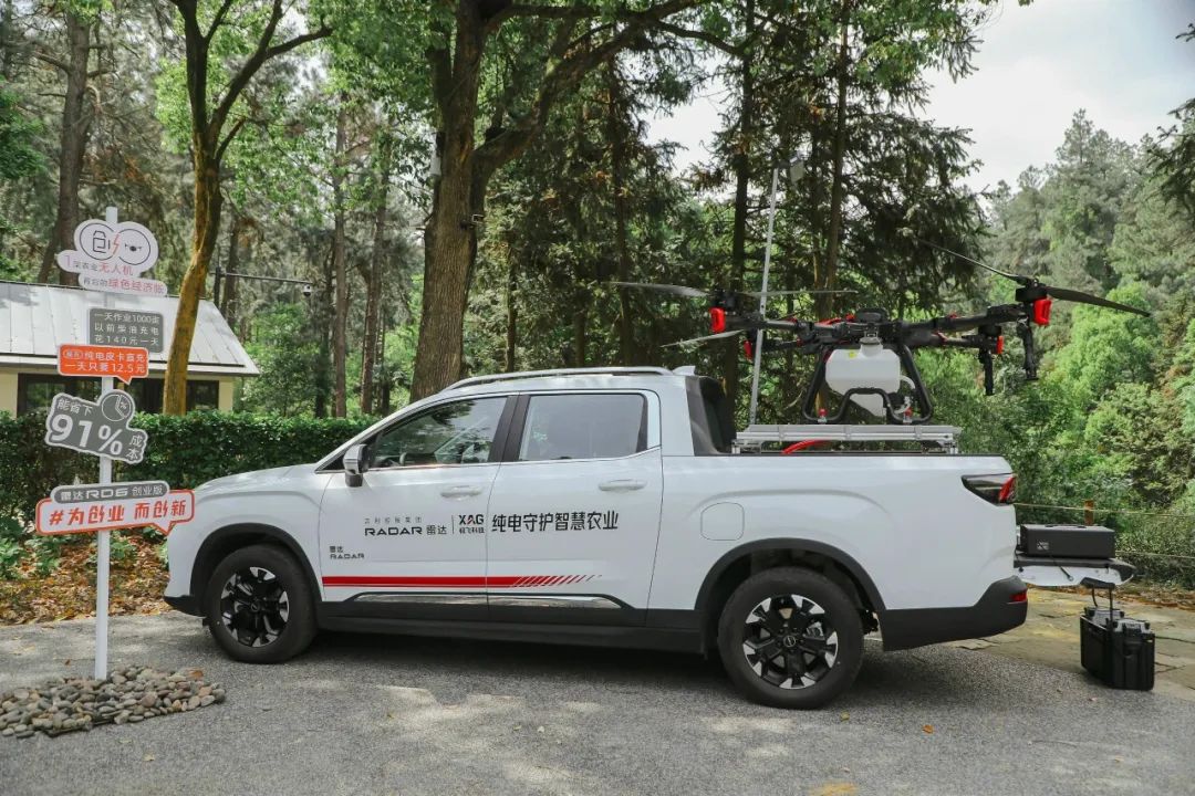 4 月 26 日,作为雷达汽车的战略合作伙伴,极飞科技受邀出席#雷达 RD6 创业版 上市发布会,联合推出了“纯电皮卡+农业无人飞机”的智慧农业新组合。这一装备搭配将全新户外能源方式带入农业生产环节,为新农人增收、农业低碳发展创造无限可能。