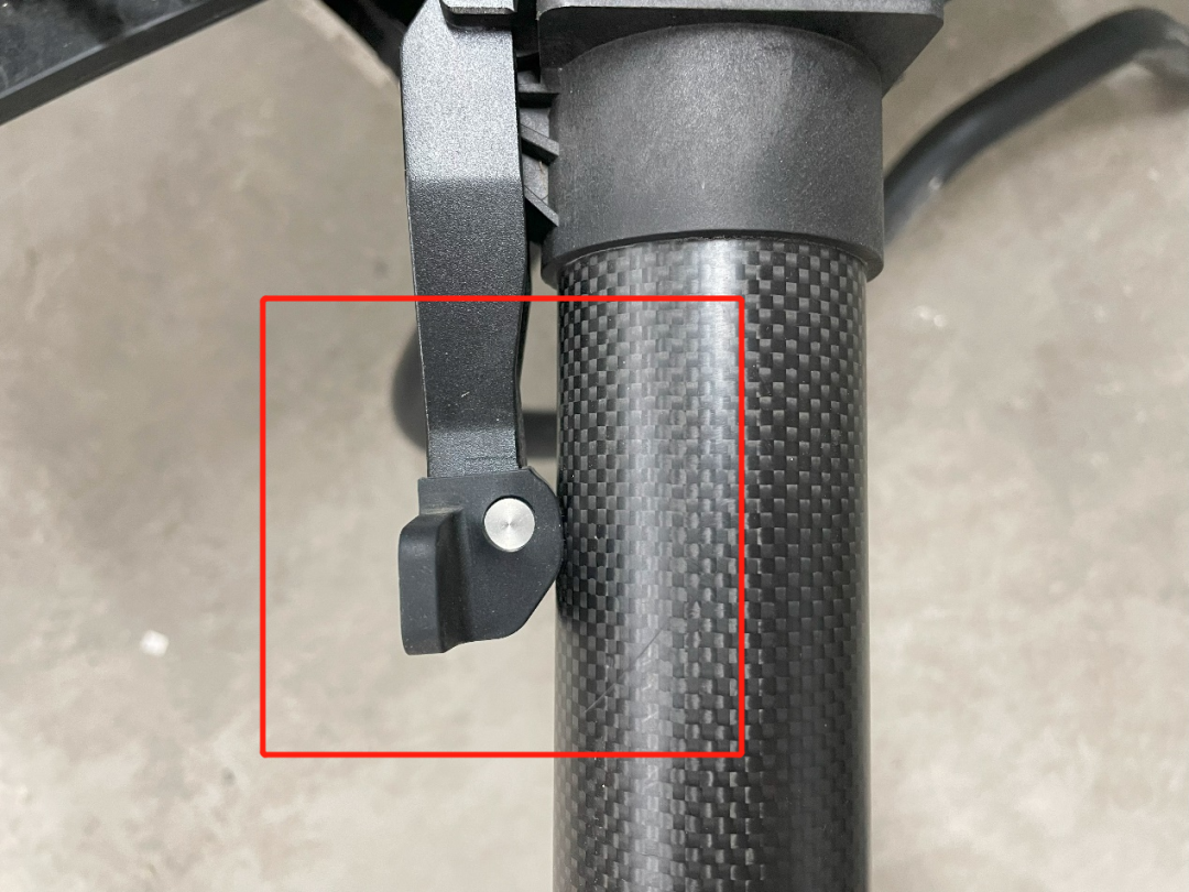 关注二:折叠锁扣,整机四个折叠锁扣起飞前确认是否锁紧,锁扣应紧紧贴在机臂碳管上。