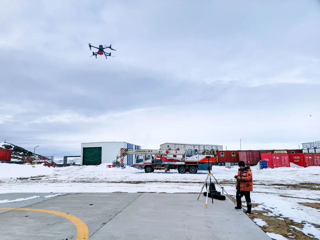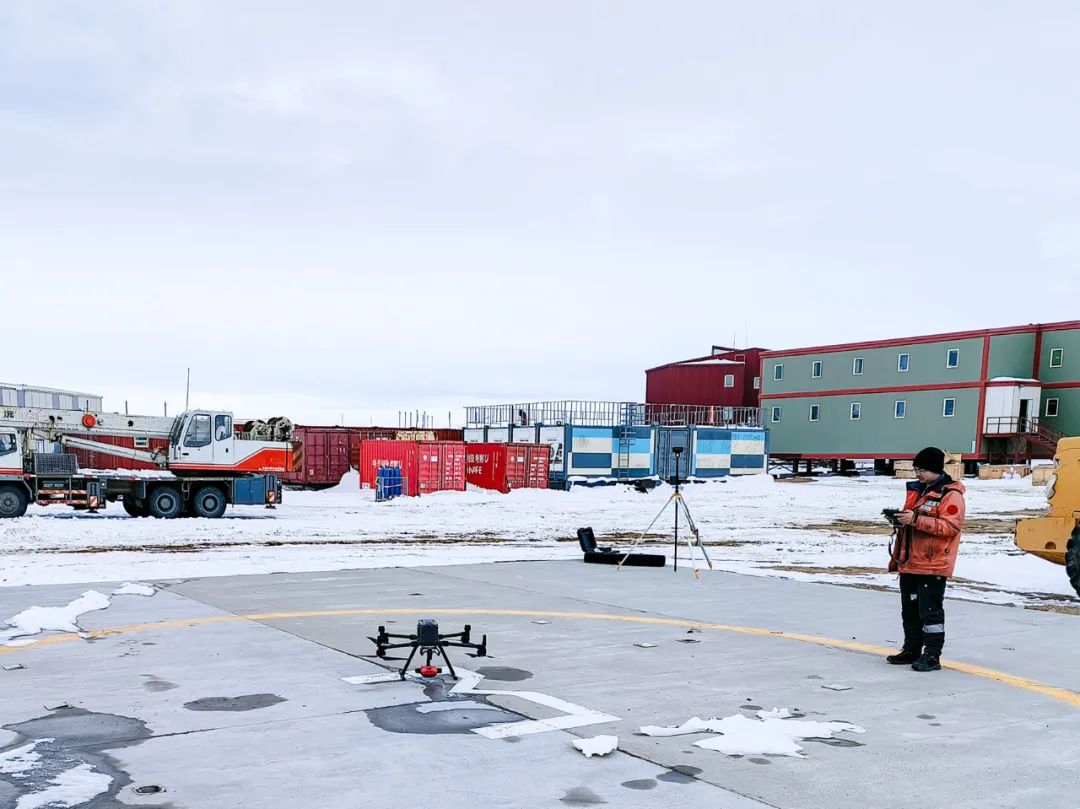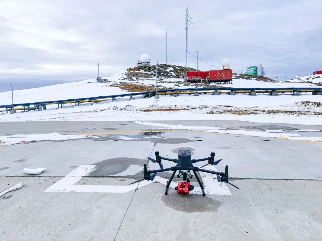 本次参与南极科考的同济大学科考队员,使用经典的大疆经纬300 RTK+赛尔PSDK 102S V3航测组合,在设备的稳定性和效率方面,都给科考队员提供了很大的保障。另外结合提前部署的RTK基站,为无人机提供稳定的信号支撑,助力同济大学科考队员顺利完成极地环境的三维数据采集。