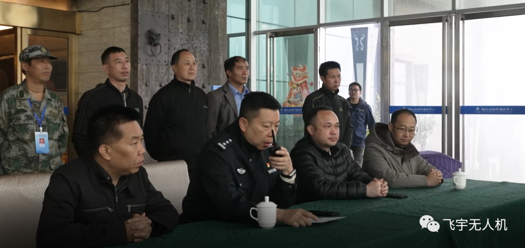 “报告总指挥,搜救小组集结完毕,请指示!” ,“搜救小组出发,无人机将实时指引位置,请注意组网对讲机对话沟通,注意个人安全”,由猫儿山派出所郑所长作搜救小组组长,民警、消防队、管理处人员组成的8人搜救小组成立。指挥中心刚收到报警称,因大雾天气,有一队登山驴友迷失方向,因有人受伤急需救助,作为本次搜救演练总指挥桂林市公安局生态环境保护分局喻局立即召开搜救方案研讨,派出搜救小组,并协调无人机小组提前进行被困人员搜寻定位,将猫儿山专网通信打开,保证一线救援小组和指挥中心通信顺畅,无人机实时视频回传临时指挥中心。对被困人员进行药物、食物无人机投送。