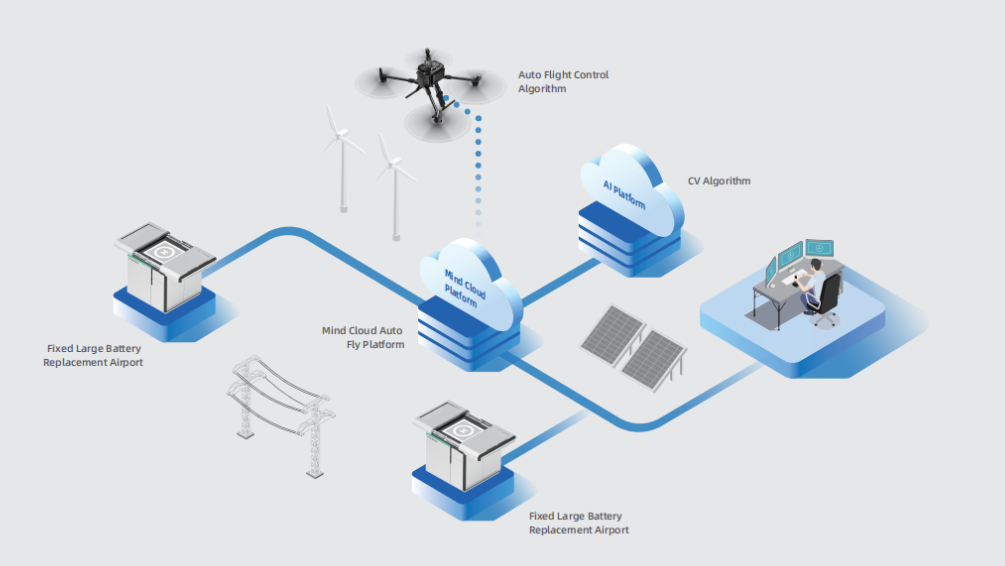 复亚智能作为华为与中建信息强有力的合作伙伴,近年来双方在产品上已形成深度合作。基于无人机全自动飞行系统的行业数字化解决方案可以为用户提供高效便捷的低空数据采集与服务方案。该方案广泛应用在电网巡检、水利巡检、公安巡逻、交通监管、环保监测等各个领域,不仅大大提高了数据采集的效率,也极大地降低了人工作业的风险,从而真正实现了数字化技术的实际应用价值。