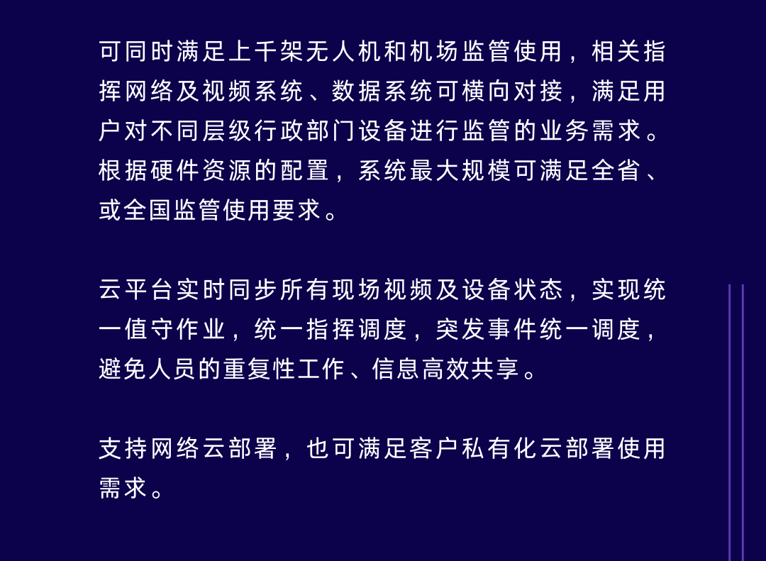 公司自主研发生产军工级无人机、通信指挥车、无线图传、AI指控系统等核心产品,为应急救援、公共安全、国防军事等领域提供空天地一体化AI指控系统解决方案;公司凭借“车载智能无人机、无线通信、人工智能、飞控算法、空气动力、材料科学”等方面的技术优势,于2020年成功研制了全球第一套“空天地一体化AI指控系统”,并填补了我国“车载智能无人机”的技术空白。公司已取得上百项专利技术、数十种行业资质和军工资质,连续五年获得全国无人机十强品牌、十大特种装备品牌等称号;是公安部协议供货单位,是四川省消防和应急等部门的战略合作伙伴。公司产品已经参加了汶川大地震、奥运安保、天津大爆炸、九寨沟地震、汶川泥石流、湖北抗洪抢险等上千次应急救援和军警保障活动。