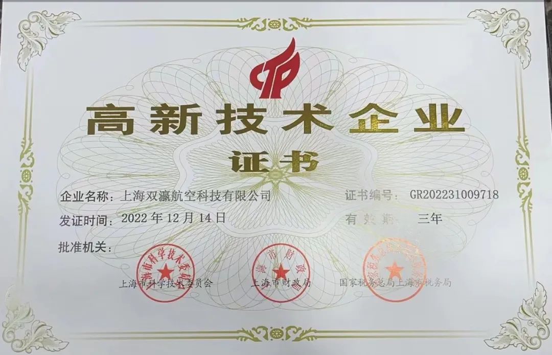 双瀛航空获得高新技术企业资质,标志着双瀛在无人机领域达到了国内领先水平,也为今后的发展提供了强大的动力和支持。
