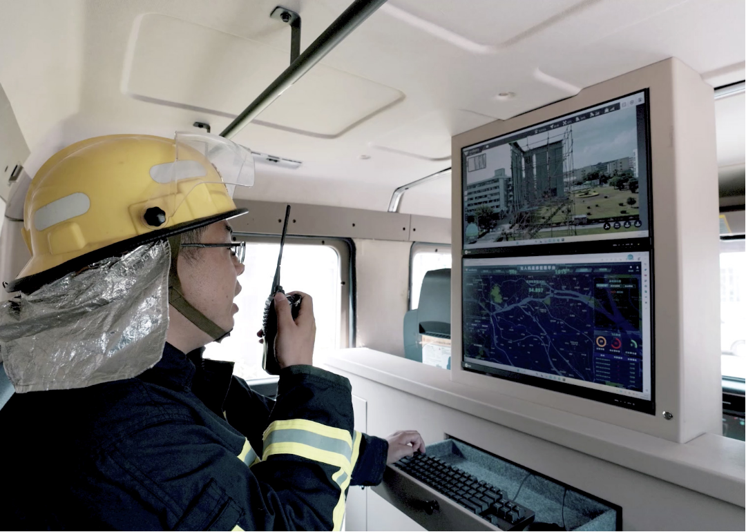 ▲指挥员在车上可实时监控现场态势